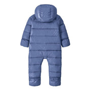 Internal smocked elastic at the sleeve and leg openings creates a snug fit; fold-over mitts and foot covers keep out the cold