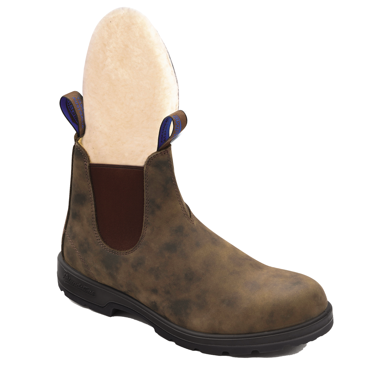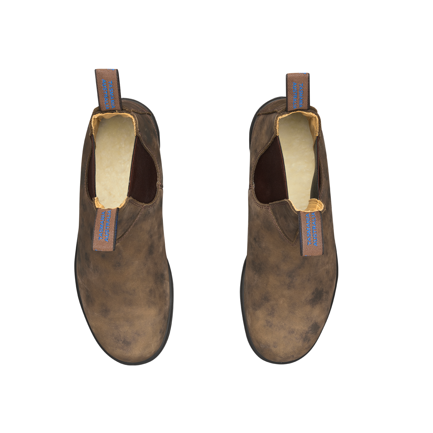 Blundstone #584 Winter Thermal Chelsea in Rustic Brown, waterproof winter comfort with fleece and Thinsulate™. Waterproof elastics, too. All-day comfort for long winter walks. Unisex Blundstone sizing.