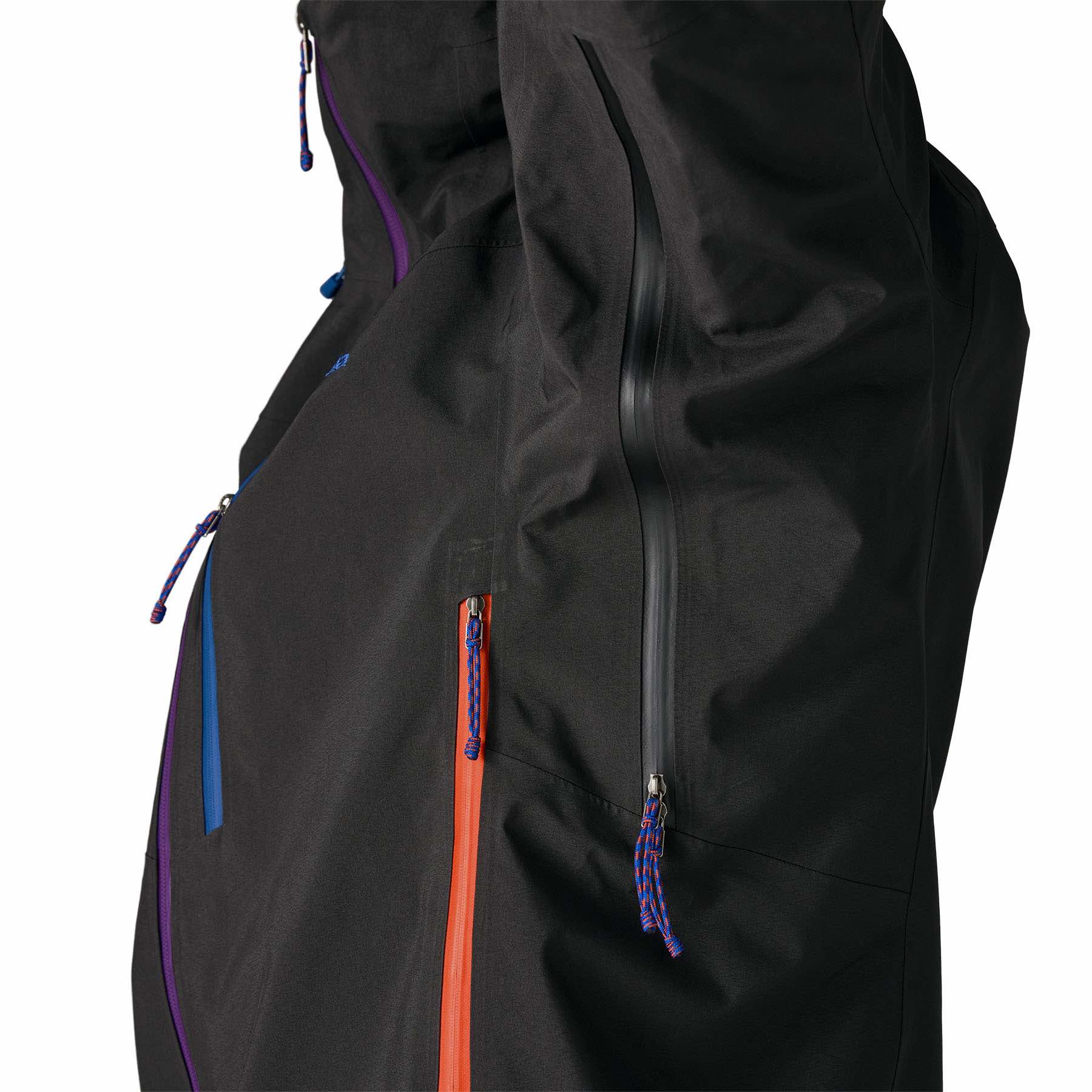 • Two waterproof chest pockets, the left has an interior zippered stretch media pocket; two high handwarmer pockets with waterproof zippers stay clear of a harness or a pack waistbelt; one interior-right drop-in pocket, and one interior-left zippered pocket