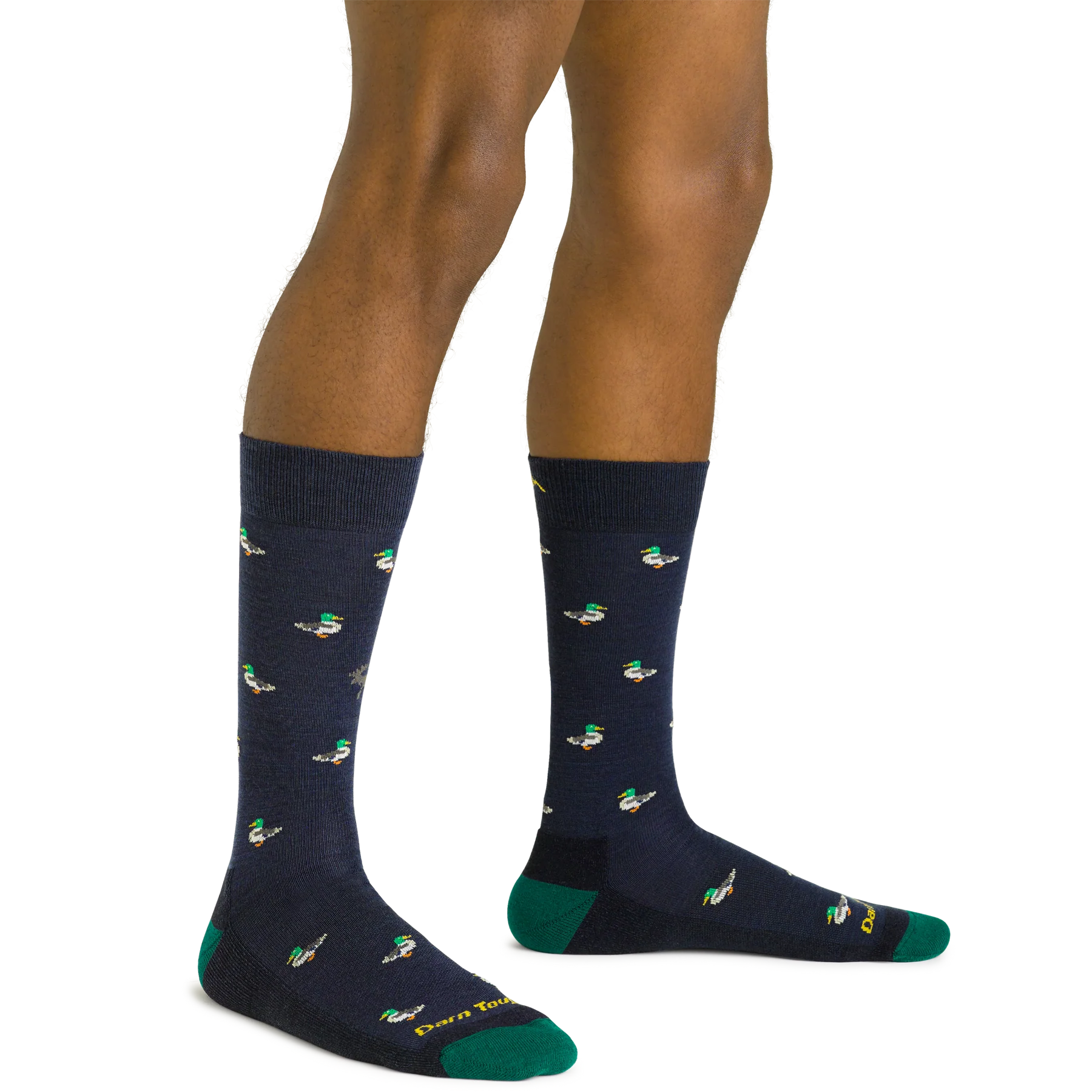If you've ever crossed paths with a moose- you'd remember. Our Duck Duck Moose sock comes from a Vermont take on the classic duck-duck-goose game. Only in our version, if you see a moose you run away, not in a circle. Thankfully, the Merino Wool knit and durable construction of these best fitting socks will have you outrunning moose most of the time. Classic crew height of a men's dress sock with cushion under foot for added waddling comfort.