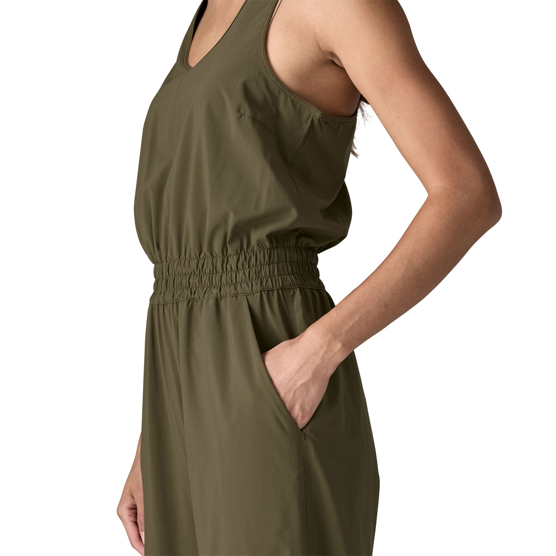 Your easy-care do-it-all travel jumpsuit for many warm days ahead, made of quick-drying 90% recycled polyester with a touch of spandex for stretch. Bra-friendly straps, an elastic waistband and a straight leg design create a flattering, comfy fit that can be dressed up or down.