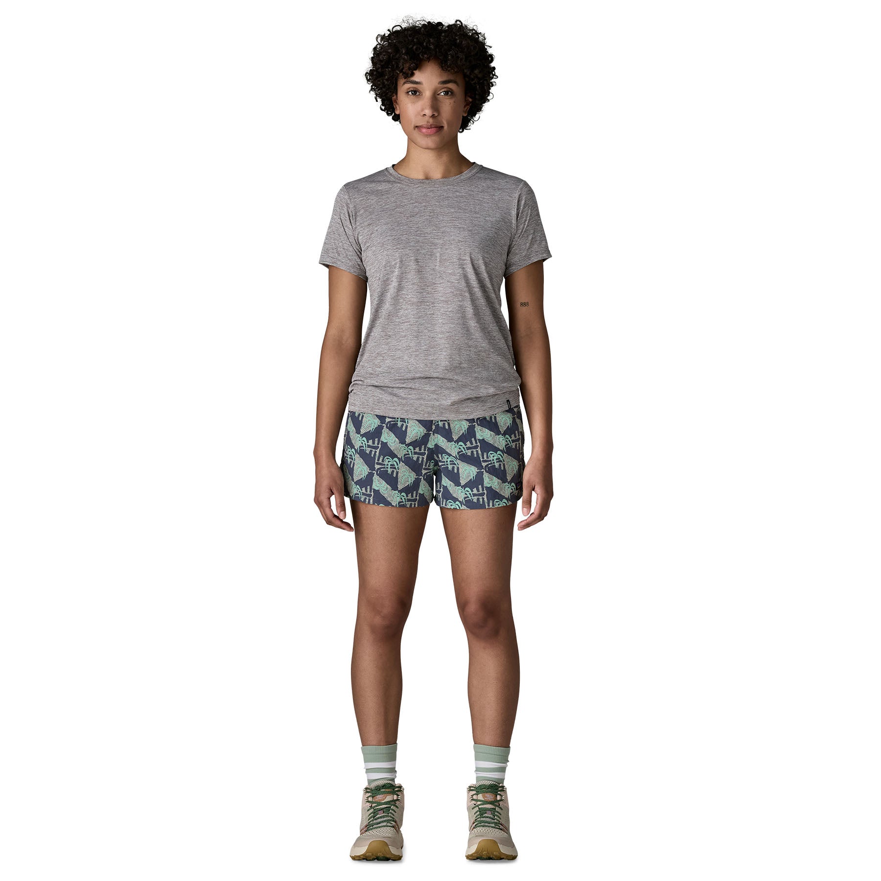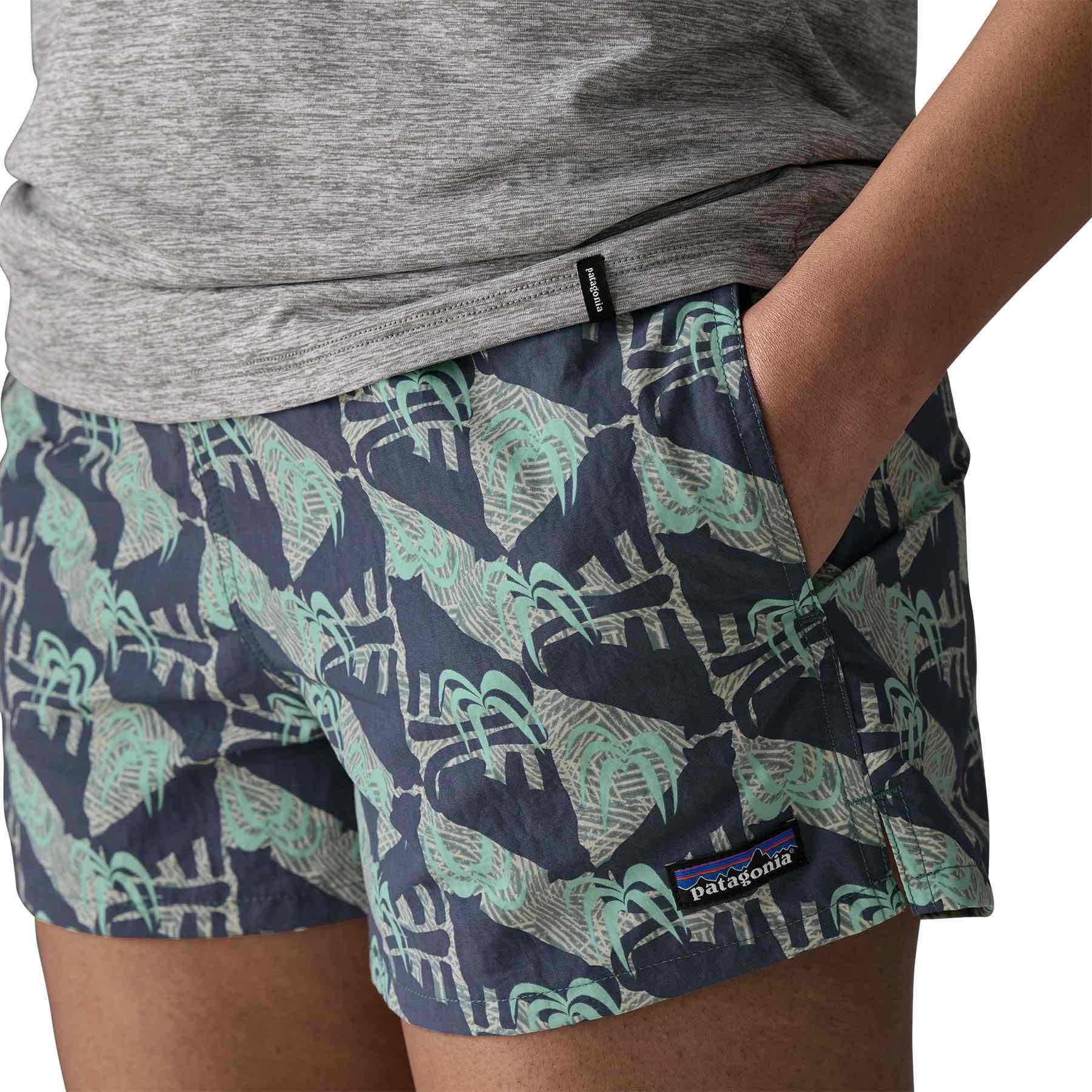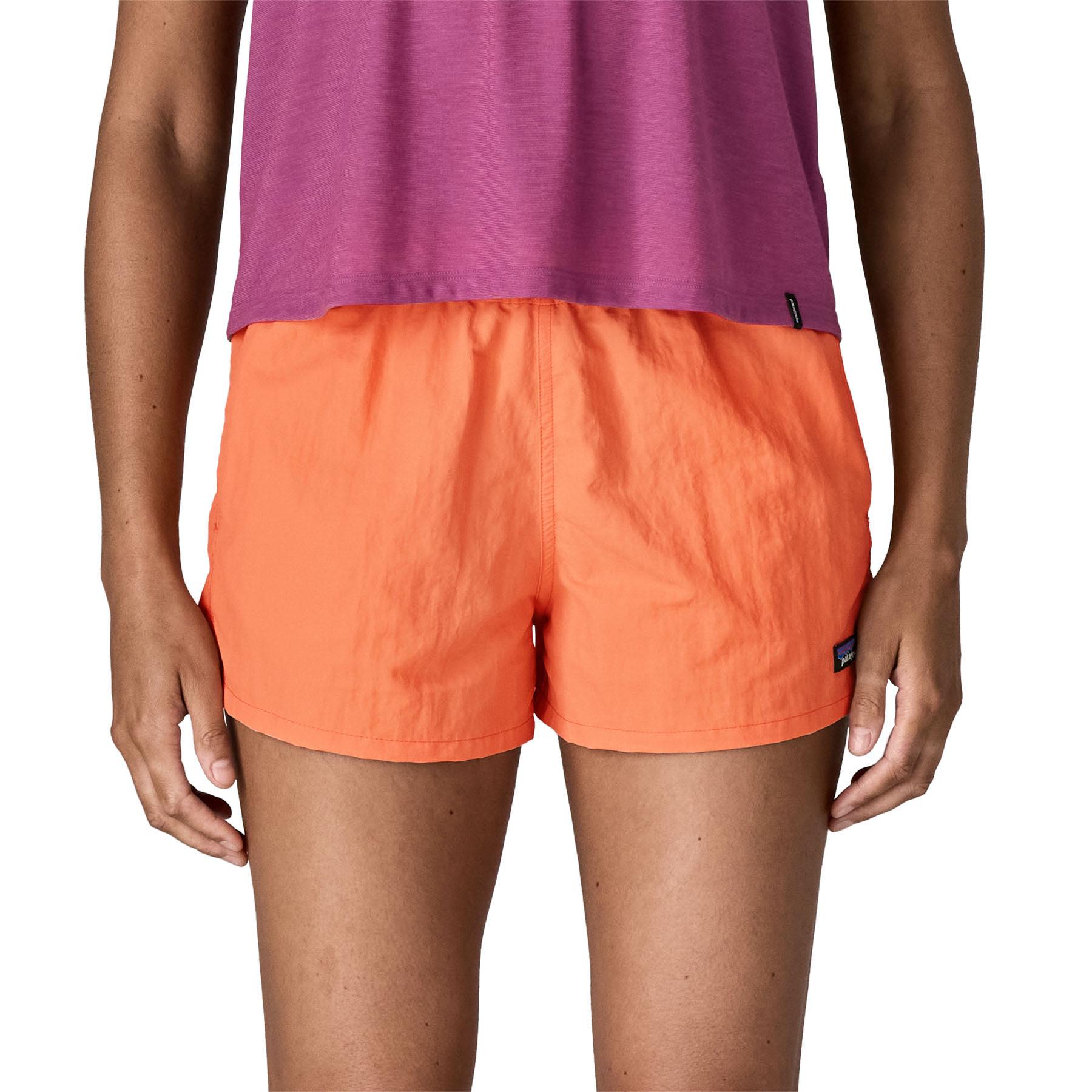 The Barely Baggies™ Shorts have a regular rise and a shorter inseam than our classic Baggies, with side slits at the hem for comfort. They're made of 100% recycled nylon faille with a durable water repellent (DWR) finish made without perfluorinated chemicals (PFCs/PFAS) and have a P-6 logo at the left hem. Inseam length is 2½".